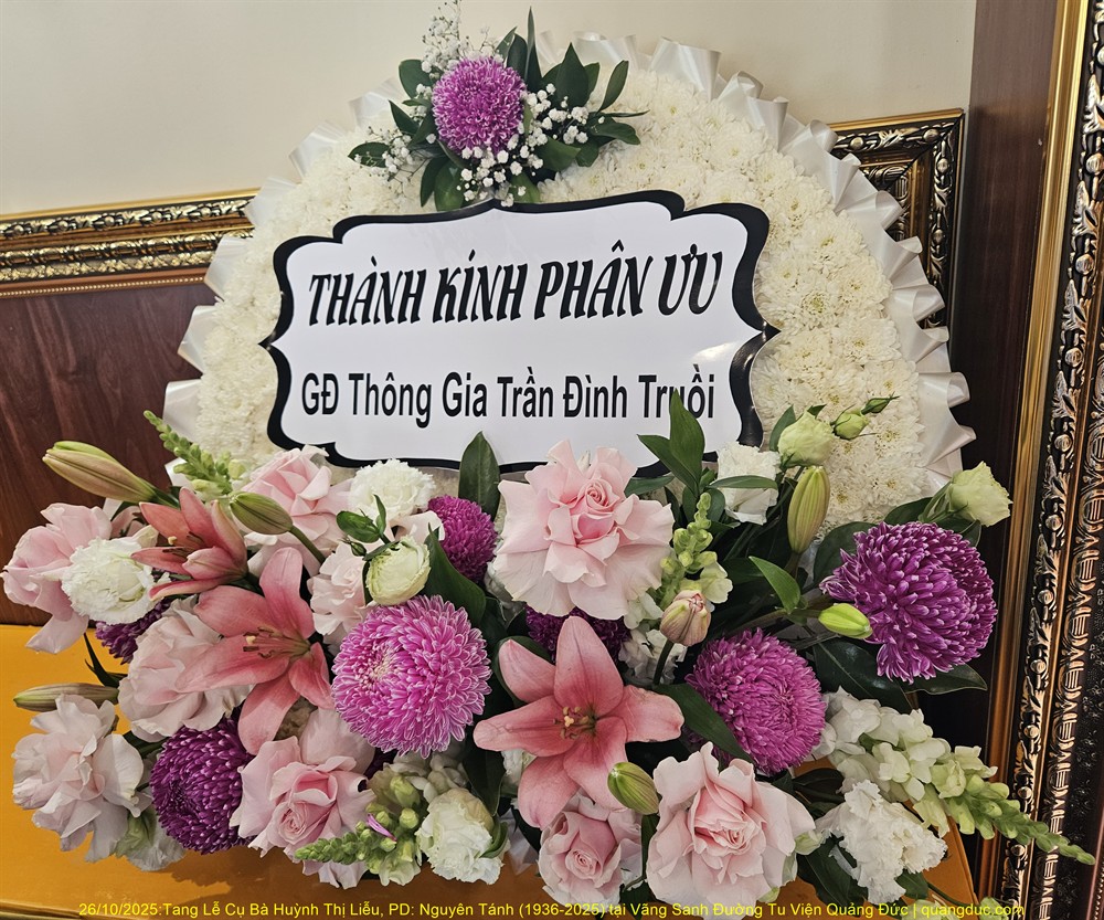 Điện Thư Phân Ưu cùng Thượng Tọa Thích Tâm Minh (Chùa Pháp Vân, Canada)--Điện Thư Phân Ưu Nam Mô Tiếp Dẫn Đạo Sư A Di Đà Phật Tu Viện Quảng Đức vừa nhận được tin buồn: Thân Phụ của Thượng Tọa Thích Tâm Minh (Chùa Pháp Vân, Montreal, Canada) là: Cụ Ông PHAN VĂN ĐIỆU Pháp danh: TÂM KÍNH Sanh năm: 1936 (Bính Tý) tại Nha Trang, Việt Nam Mãn phần ngày 15/2/2026 (28/12/Ất Tỵ) tại Nha Trang, VN Hưởng đại thọ: 90 tuổi Thay mặt Đạo Tràng Tu Viện Quảng Đức/Trang Nhà Quảng Đức thành tâm chia buồn cùng Thượng Tọa Thích Tâm Minh và toàn gia Tang Quyến. Nhất tâm cầu nguyện Hương linh Phật tử Tâm Minh Phan Văn Điệu Vãng Sanh Cực Lạc Quốc *** Nay Thành kính Phân Ưu Hòa Thượng Thích Thông Mẫn Viện Chủ Tu Viện Quảng Đức Thượng Tọa Thích Nguyên Tạng Trụ Trì Tu Viện Quảng Đức Thượng Tọa Thích Đăng Từ Tri Sự Tu Viện Quảng Đức Ban Hộ Trì Tam Bảo Tu Viện Quảng Đức