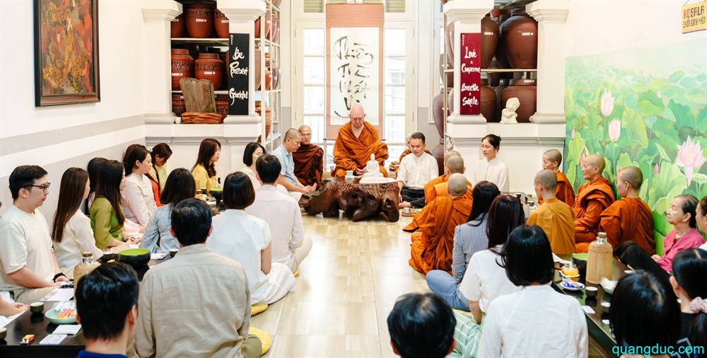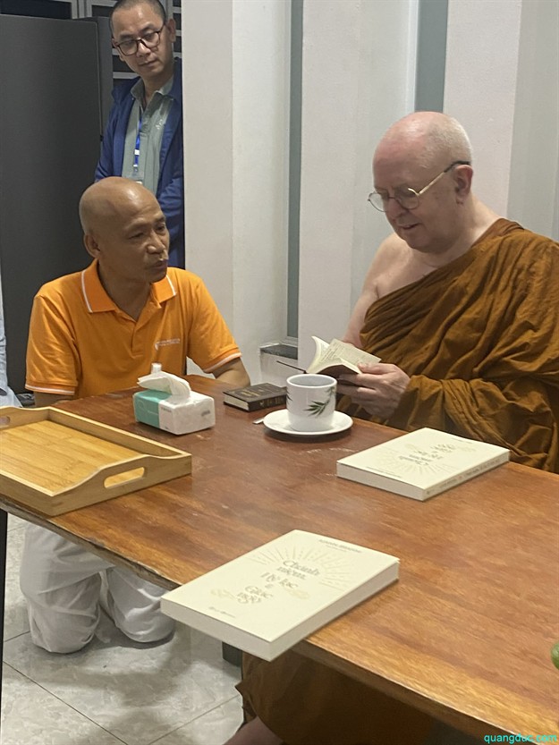 Trong toàn bộ buổi tiếp, Thiền sư Ajahn Brahm lắng nghe tâm sự của Tiến sĩ Nguyễn Mạnh Hùng, ghi nhận tấm lòng của người đứng đầu một đơn vị xuất bản có uy tín, nhất là mong muốn của ông muốn mời thiền sư ra Hà Nội để nói chuyện về sách và hướng dẫn thiền. Ngài chia sẻ về lịch trình tiếp theo sau khi rời TP Hồ Chí Minh là Thái Lan, Campuchia, Srilanka. Tiến sỹ Hùng tiếp ngay “Sau Srilanka là Hà Nội Việt Nam”. Ngài cười rất hiền từ và tràn đầy năng lượng.