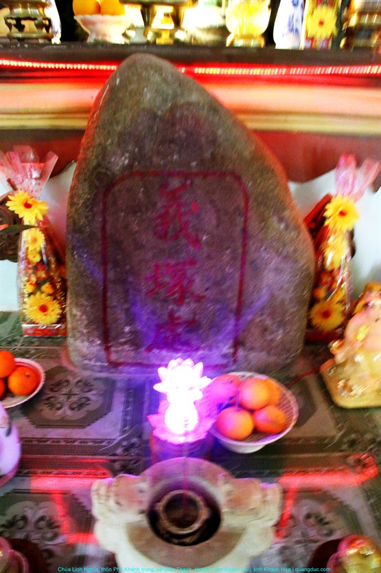 Từ rất lâu, trong khuôn viên chùa, giữa vườn cây cỏ trũng thấp ẩm ướt vào một ngày an tịnh có một tảng đá "trồi" lên từ dưới đất, trên có khắc ba chữ "Nghĩa Trũng Xứ" (義 塚 處), như báo cho hay vùng đất này vốn là một khu vực linh thiêng thuở xa xưa. Vị trụ trì không cho đào bới và xê dịch tảng đá đi nơi khác, mà lập ngay một miếu thờ bao bọc tảng đá linh hiển này. Đến hôm nay, sau khi chùa đã được trùng tu nhiều đợt, thay đổi cảnh quan rất nhiều, tảng đá được tiền nhân khắc chữ "Nghĩa Trùng Xứ" vẫn còn an vị nơi cũ, nhưng nay đang nằm dưới tôn tượng Bồ tát Địa Tạng Vương ở linh đường đối diện với nhà Hậu Tổ.