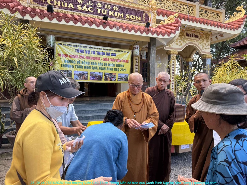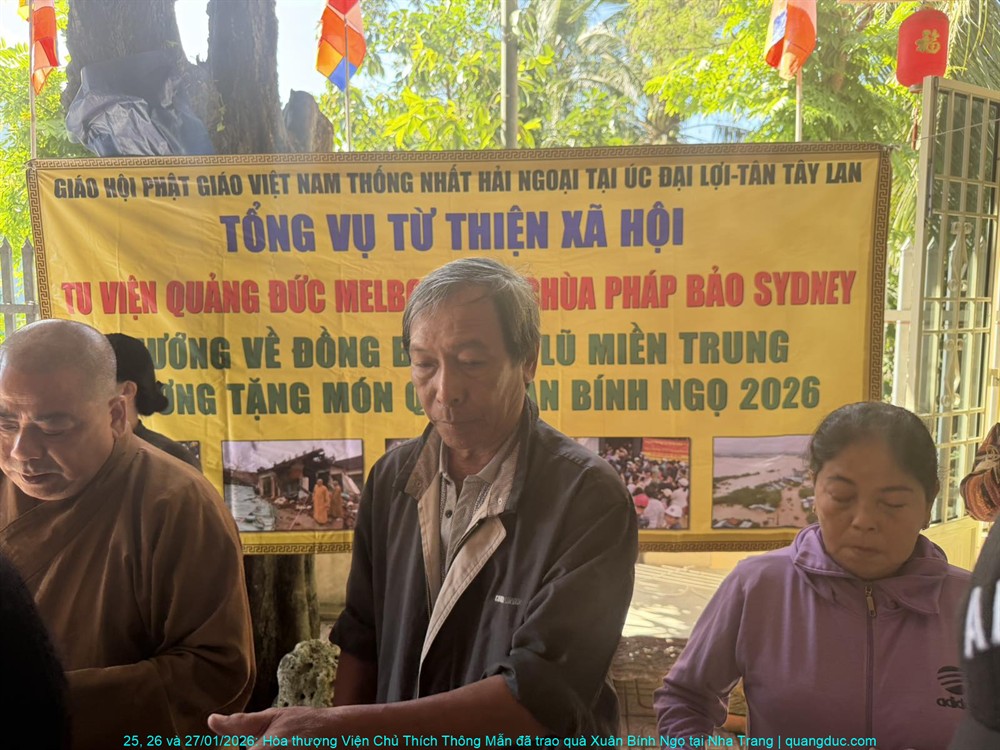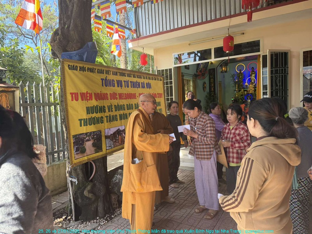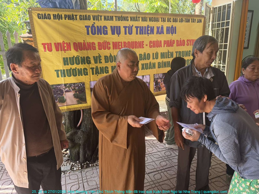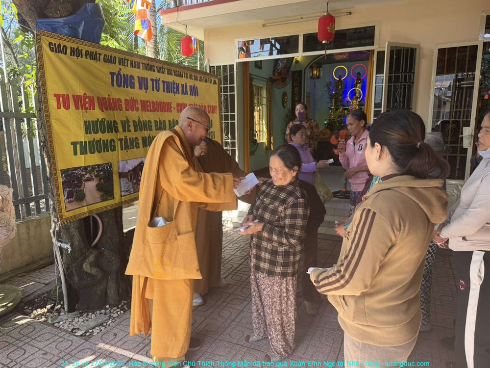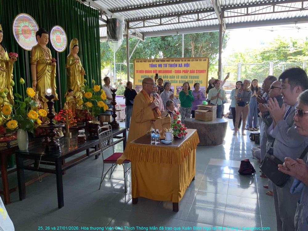 Thay mặt Ban Từ Thiện Xã Hội Tu Viện Quảng Đức (Melbourne) và Tự Viện Pháp Bảo (Sydney), Hòa thượng Viện Chủ đã trao tặng tổng cộng 500 phần quà Tết đến đồng bào nghèo và người khiếm thị, với tổng trị giá 220 triệu đồng Việt Nam. Mỗi phần quà tuy không lớn về mặt vật chất, nhưng chứa đựng trọn vẹn nghĩa tình, sự quan tâm sâu sắc và tinh thần tương thân tương ái của những người con Phật nơi hải ngoại luôn hướng lòng về quê hương.