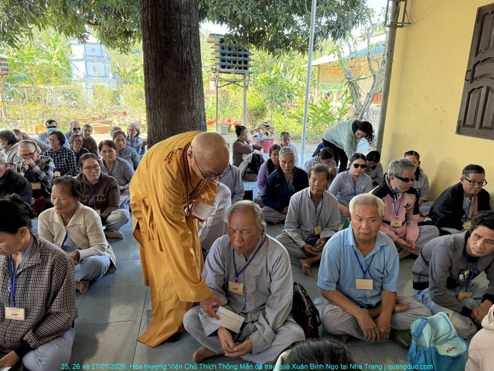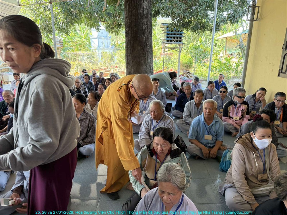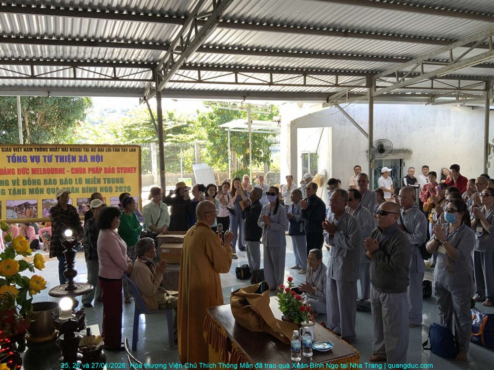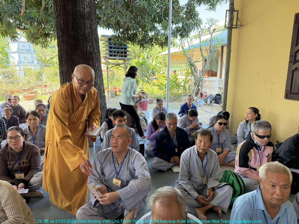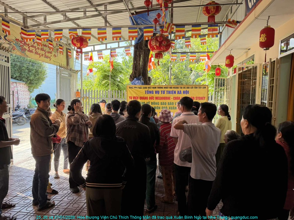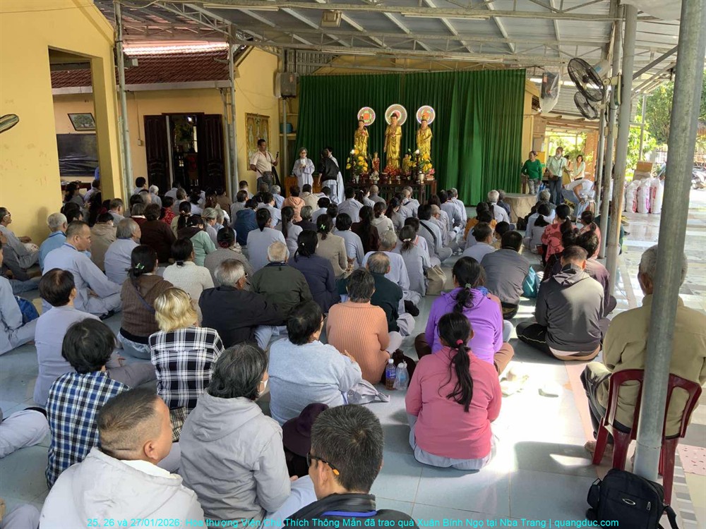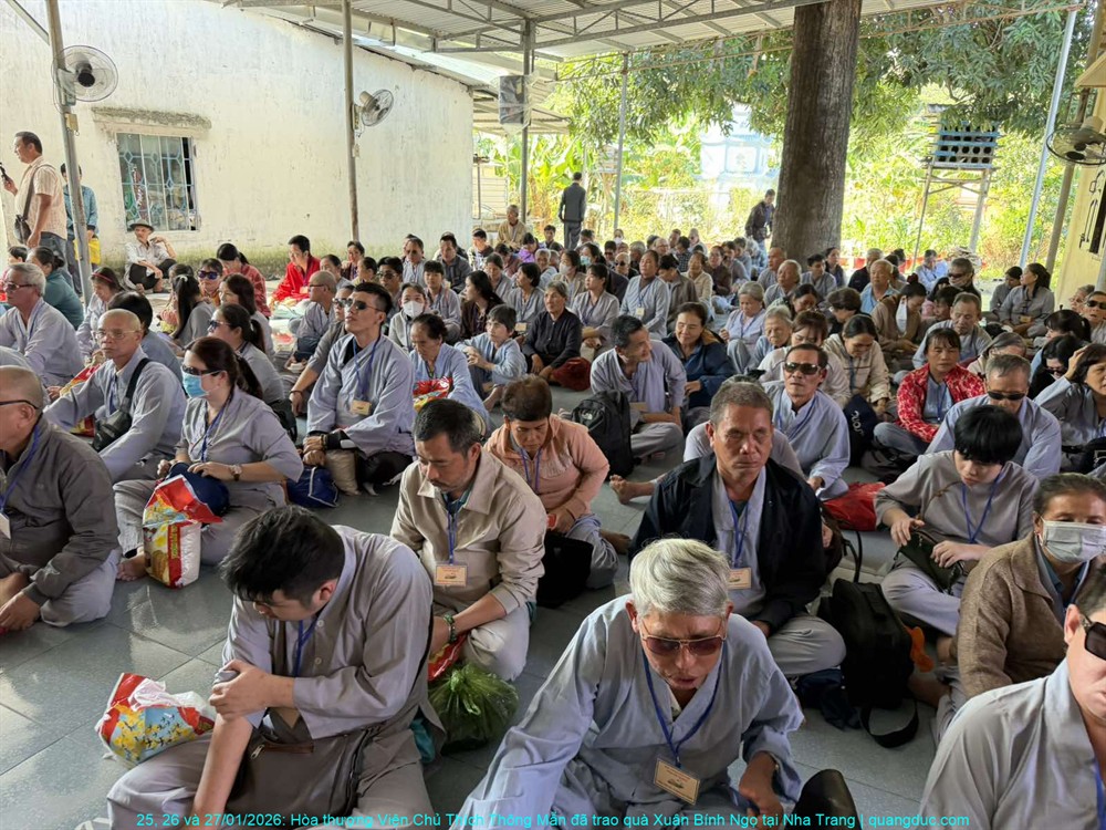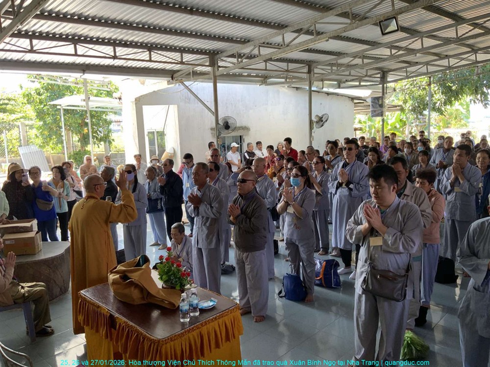 Trong không khí ấm áp của những ngày cận Tết cổ truyền Xuân Bính Ngọ 2026, từ ngày 25 đến 27 tháng 01 năm 2026, với tinh thần từ bi cứu khổ và sẻ chia yêu thương, Hòa thượng Viện Chủ Tu Viện Quảng Đức – Thích Thông Mẫn đã thực hiện chuyến viếng thăm và trao quà xuân tại ba tự viện trên địa bàn thành phố Nha Trang, tỉnh Khánh Hòa.