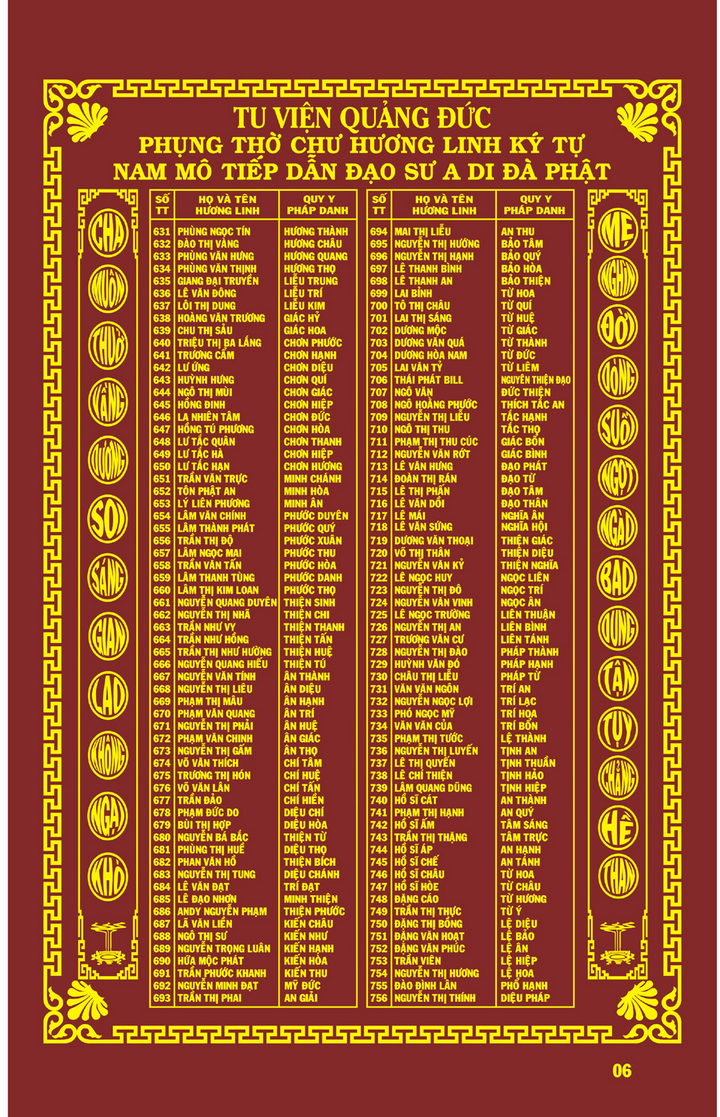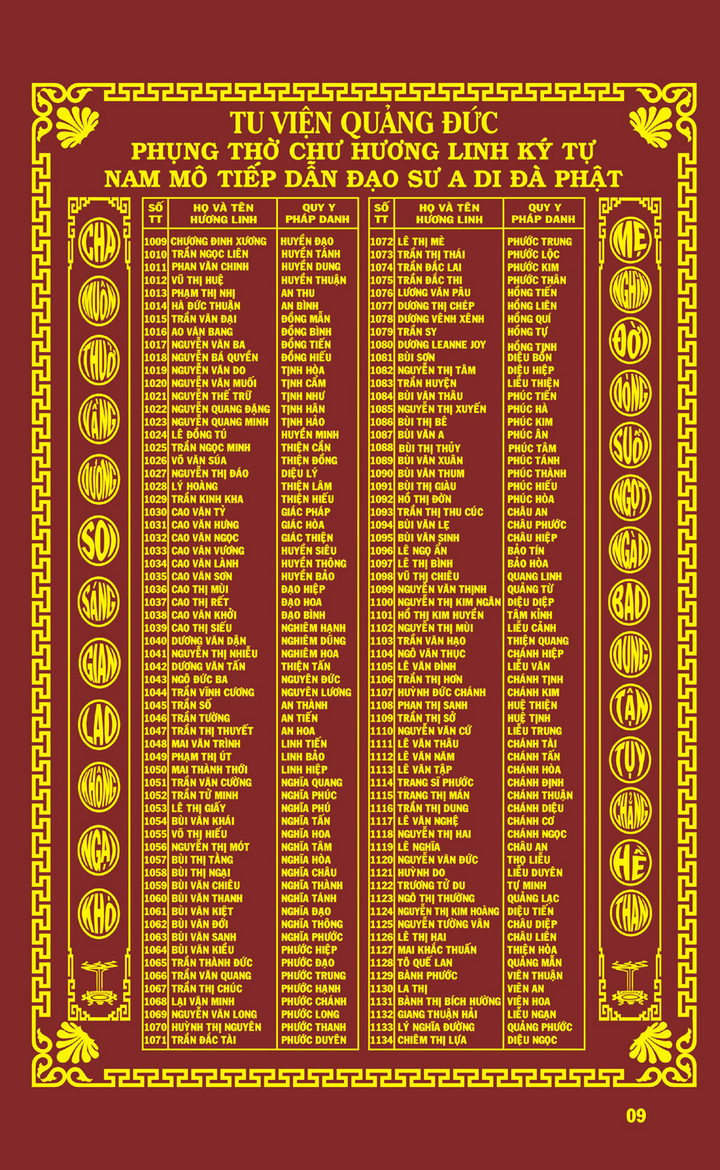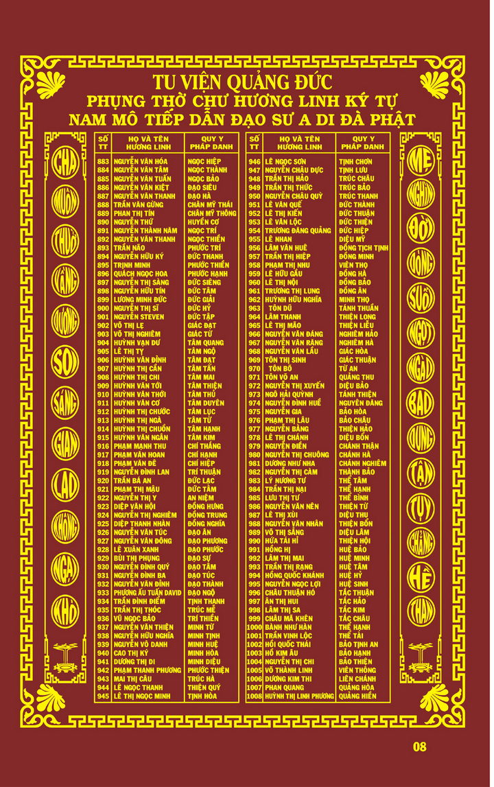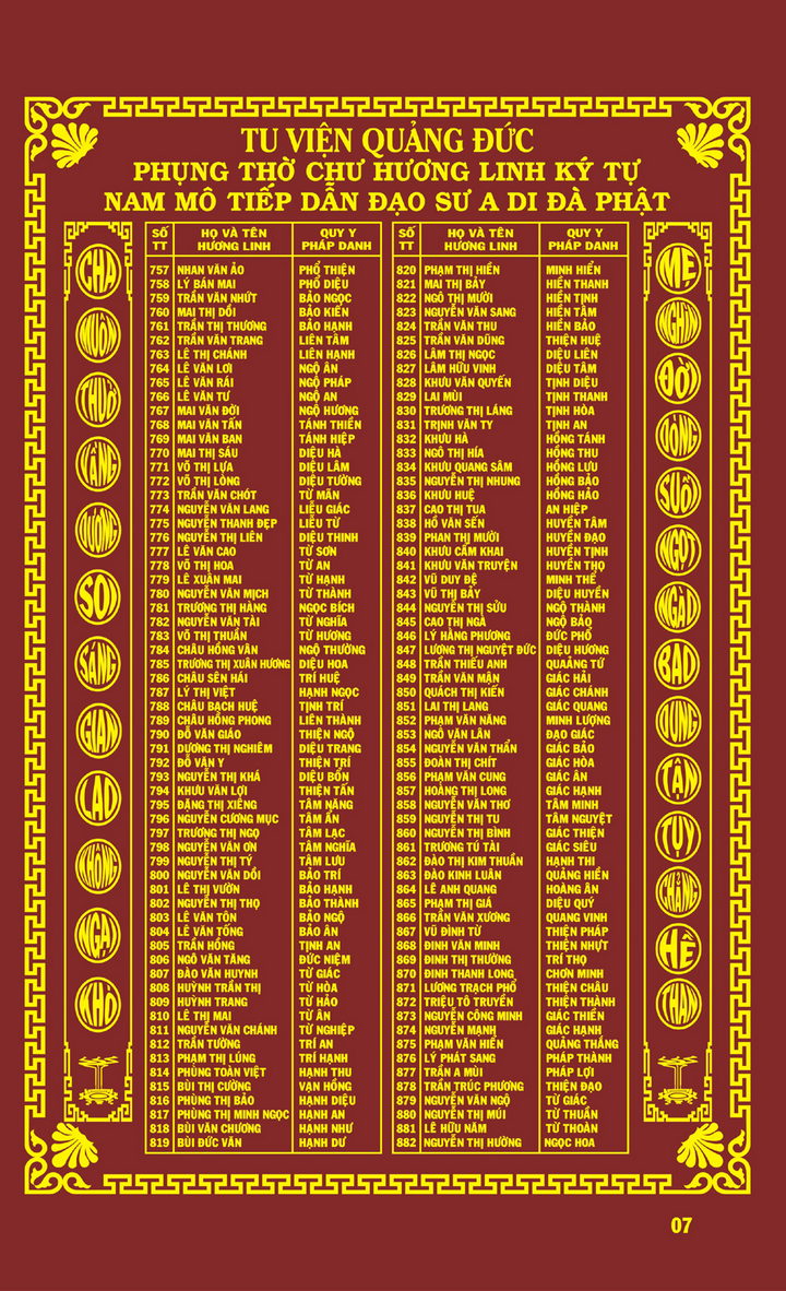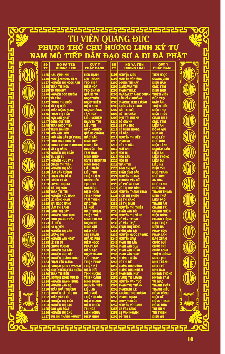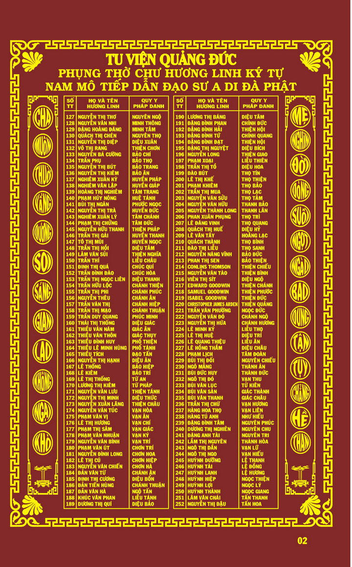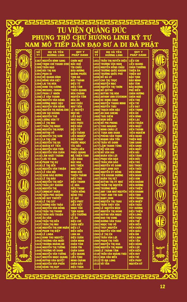 Bảng Khắc Đá Hương Linh thờ tại tầng trệt Tháp Tứ Ân ở Tu Viện Quảng Đức từ năm 1990 đến 2013