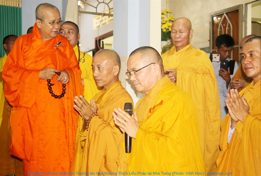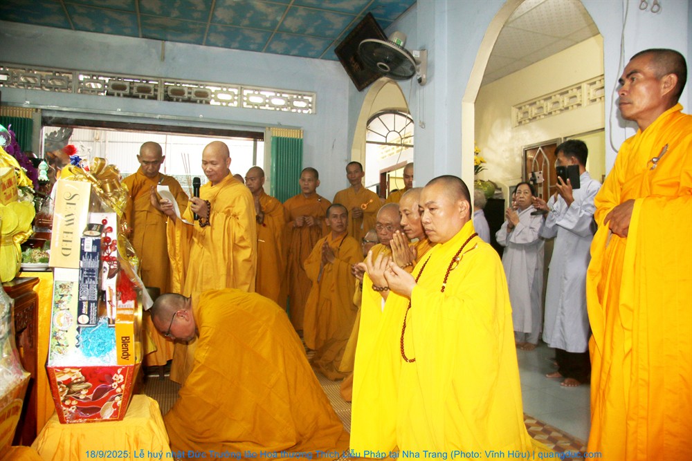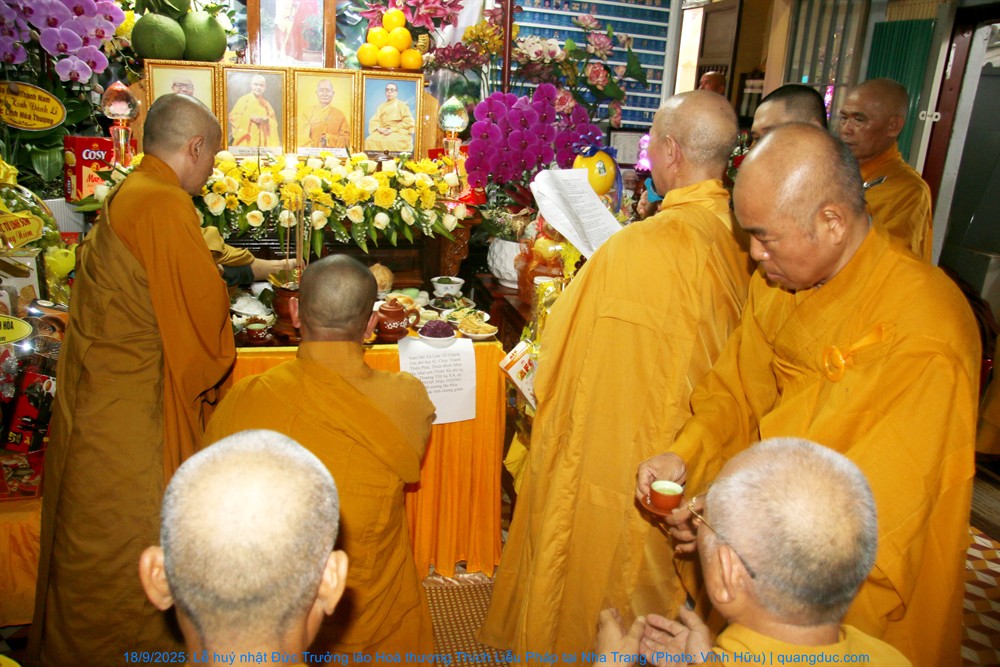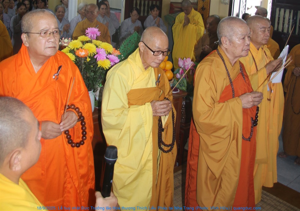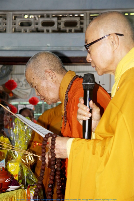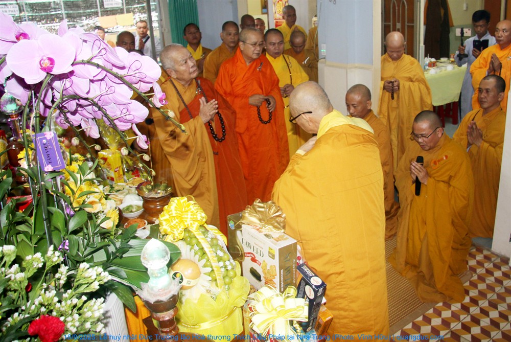 Quang lâm tham dự lễ có Hoà thượng Thích Quảng Thiện, HT. Thích Nguyên Quang, đồng Thành viên HĐCM, Chứng minh BTS GHPGVN tỉnh Khánh Hoà; HT. Thích Đức Thành, Phó Trưởng Ban Trị sự GHPGVN tỉnh; HT. Thích Trí Khải, trụ trì chùa Quy Chơn (Phước Đồng, P. Nam Nha Trang)... cùng chư tôn Thượng toạ, Đại đức Tăng-Ni và đồng đảo Phật tử tề tựu tụng kinh, tưởng niệm...