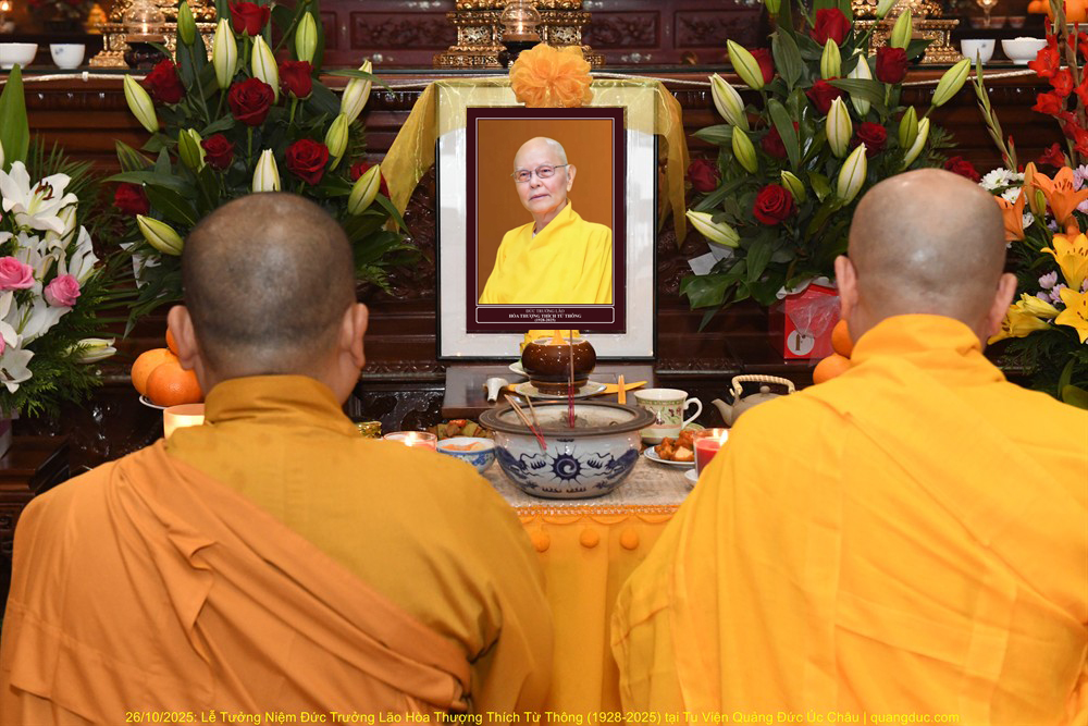 - 26/10/2025: Lễ Tưởng Niệm Đức Trưởng lão Hòa thượng Thích Từ Thông (1928-2025) tại Tu Viện Quảng Đức, Melbourne, Úc Châu
