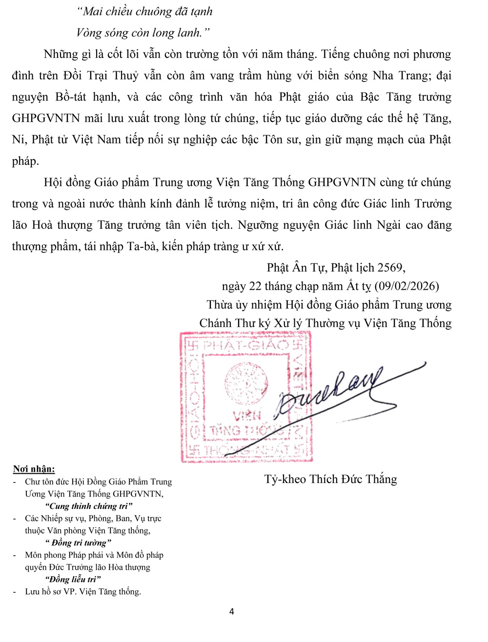 - Thông Bạch Tang Lễ Trưởng Lão Hòa Thượng Tăng Trưởng Thích Phước An (1947-2026)