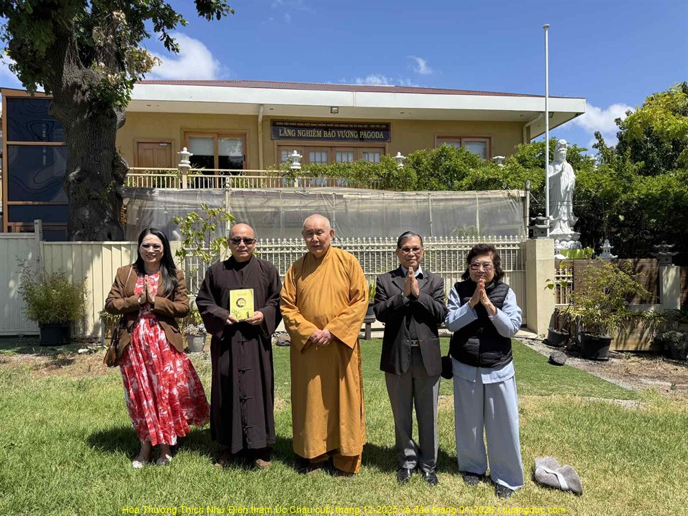 Sau 5 ngày Tu Học tại Portsea, lễ bế mạc đã diễn ra trong khung cảnh trang nghiêm thanh tịnh của vùng biển gần Melbourne, là nơi mỗi ngày có bốn mùa xuân hạ thu đông ,mà trên thế giới nầy chẳng nơi đâu có thể so sánh được. Nếu Quý Vị nào muốn trải nghiệm thì xin một lần đến thăm Melbourne vậy. Chúng tôi được đưa về Tu Viện Quảng Đức, nơi Hòa Thượng Thích Thông Mẫn khai sơn, hiện tại là Viện Chủ và Thượng Toạ Thích Nguyên Tạng Trụ Trì. Những ngày ở đây rất an lạc để đón mừng năm mới 2026 về với chư Huynh Đệ xa gần và kể cho nhau nghe nhiều câu chuyện thật là hữu ích và chính ngay ngày 1.1.2026 Thượng Toạ Nguyên Tạng đã chở chúng tôi đến thăm Lăng Nghiêm Bảo Vương và đảnh lễ Trưởng Lão Hòa Thượng Thích Huyền Tôn, bậc Thiền Gia Thạch Trụ đã trụ thế gần 100 xuân thu qua lại. Tuy vậy Ngài vẫn còn mạnh khoẻ, tráng kiện vô cùng.