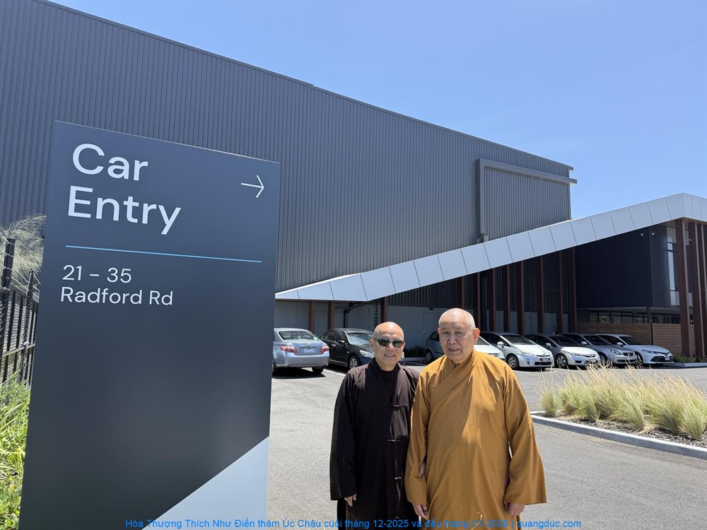 Gần 400 cây số mà chạy từ 4 giờ sáng, mãi đến 9:30 mới đến chùa Pháp Hoa tại Adelaide. Nơi đây cách gần 40 năm về trước, cố Hoà Thượng Thích Như Huệ đã khai sơn và trong hiện tại Thượng Toạ Thích Viên Trí đang Trụ Trì. Mỗi lần Tôi đến đây đều vì nghĩa Ân sư. Kể từ năm 1964 đến năm 1968, khi còn ở Hội An, Hoà Thượng là người đã dạy giáo lý, nghi lễ cho tôi khi còn học tại trường Trung Học Bồ Đề Hội An. Do ân nghĩa sâu dày ấy, mỗi lần tôi ghé thăm Úc, đều đến chùa Pháp Hoa để đảnh lễ Ngài. Năm nay sau 10 năm Ngài viên tịch, tôi cũng đến với niềm tôn kính ấy. Quý Thầy ở đây chuẩn bị làm lễ lúc 10:00 sáng và phái đoàn của chúng tôi ngơi nghỉ được một chút thì được cung thỉnh lên Chánh Điện để làm lễ vía Phật A Di Đà. Lần nầy Tổ Đình Pháp Hoa còn cung thỉnh Ban Kinh Sư từ Quảng Nam qua để đăng đàn Chẩn tế vào chiều ngày 4.1.2026.