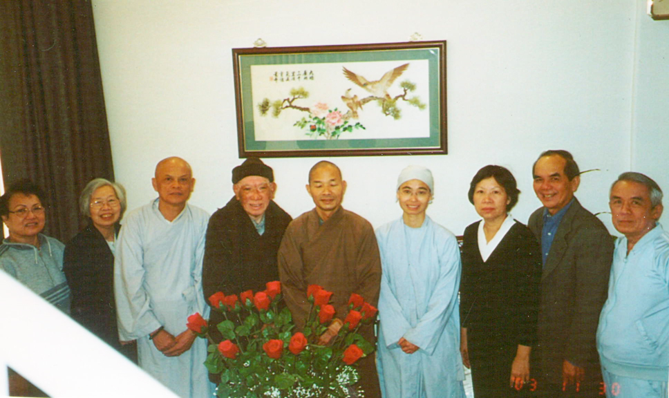 Hôm đó, khoảng 10 năm trước, thầy ghé thăm chùa Hayward, ngồi yên lặng, sát tường, gần khung cửa lớn. Tôi bỗng thấy cảm mến thầy, một sự thân thương lạ lùng phát khởi trong lòng. Lúc đó, tôi chưa biết thầy là một sĩ quan cao cấp trong quân đội, chỉ có biết sơ qua, rằng Thầy là một huynh trưởng kỳ cựu của Gia đình Phật tử. Tôi thấy thương Thầy như thương người cha mình đang ở quê nhà (thật ra, Thầy còn lớn hơn ba tôi 4,5 tuổi!) Tôi viết thư mời Thầy về trú ngụ ở Hayward, cùng sống bên nhau, cùng làm việc Phật sự, mà trong đó, chính yếu là vói đơn vị Chánh Tâm. Tôi còn giữ lá thư Thầy trả lời, và Thầy cũng còn giữ lá thư tôi gởi cho Thầy. Thỉnh thoảng, tôi thấy Thầy có đem ra “khoe” với những người bạn ở xa đến thăm Thầy. Chúng tôi trở thành thầy trò trong ngôi nhà Đạo; ngoài mối liên hệ Tăng thân còn cảm thấy ràng buộc với nhau bởi ba thứ tình khác: như cha con (tuổi tác), như anh em cùng một tổ chức (GĐPT) và chiến hữu, cùng chiến đấu cho lý tưởng tự do, bảo vệ đất nước (huynh đệ chi binh.)