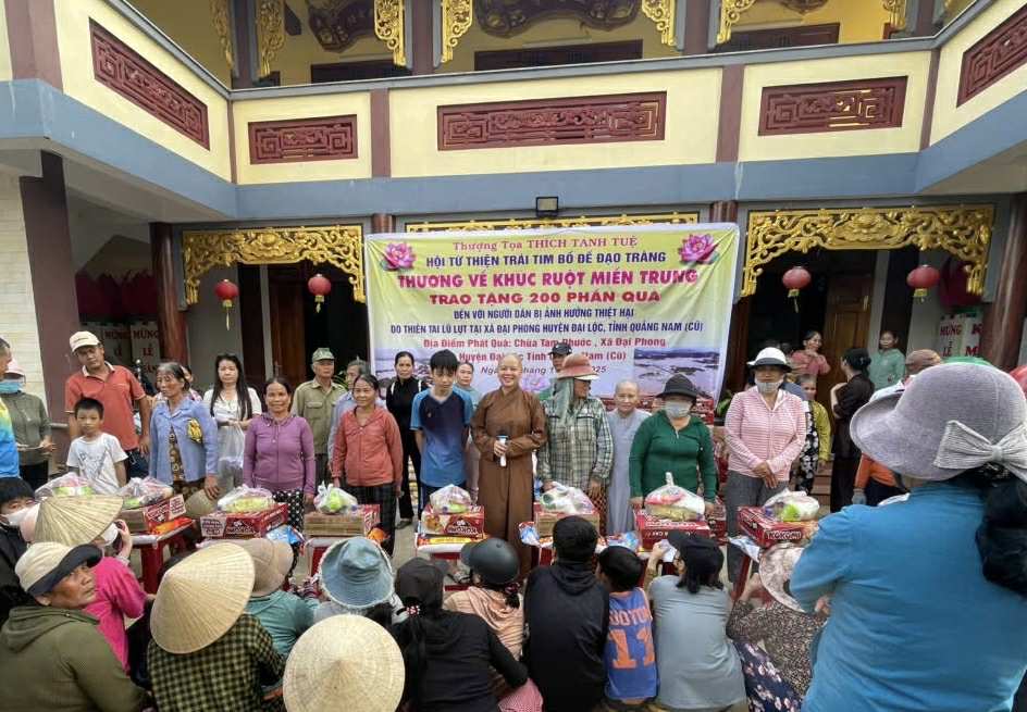 Vào ngày 08 Nov 2025, Hội từ thiện Trái Tim Bồ Đề đã có mặt cứu trợ cho 200 hộ dân tập trung tại chùa Tam Phước Quảng Nam do Ni Sư Thích nữ Thanh Hiếu & quý Sư cô hỗ trợ viêc phát quà.