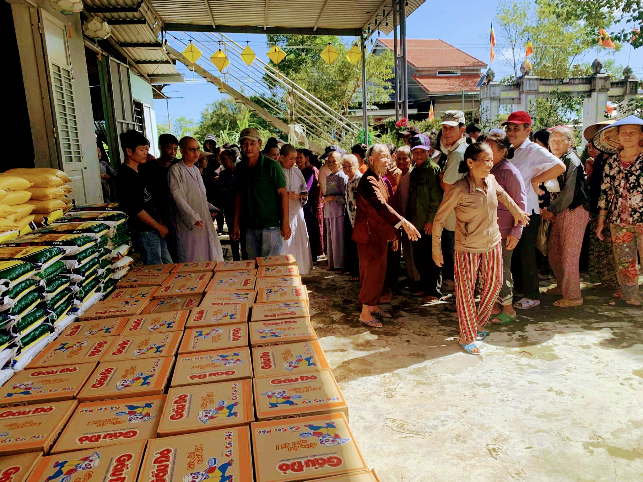 Dạ, chúng con xin thay mặt cho bà con ở Huế nói chung và Làng Liễu Cốc Thượng nói riêng kính biết ơn Thượng Toạ cùng quý vị mạnh thường quân nhiều lắm ạ.