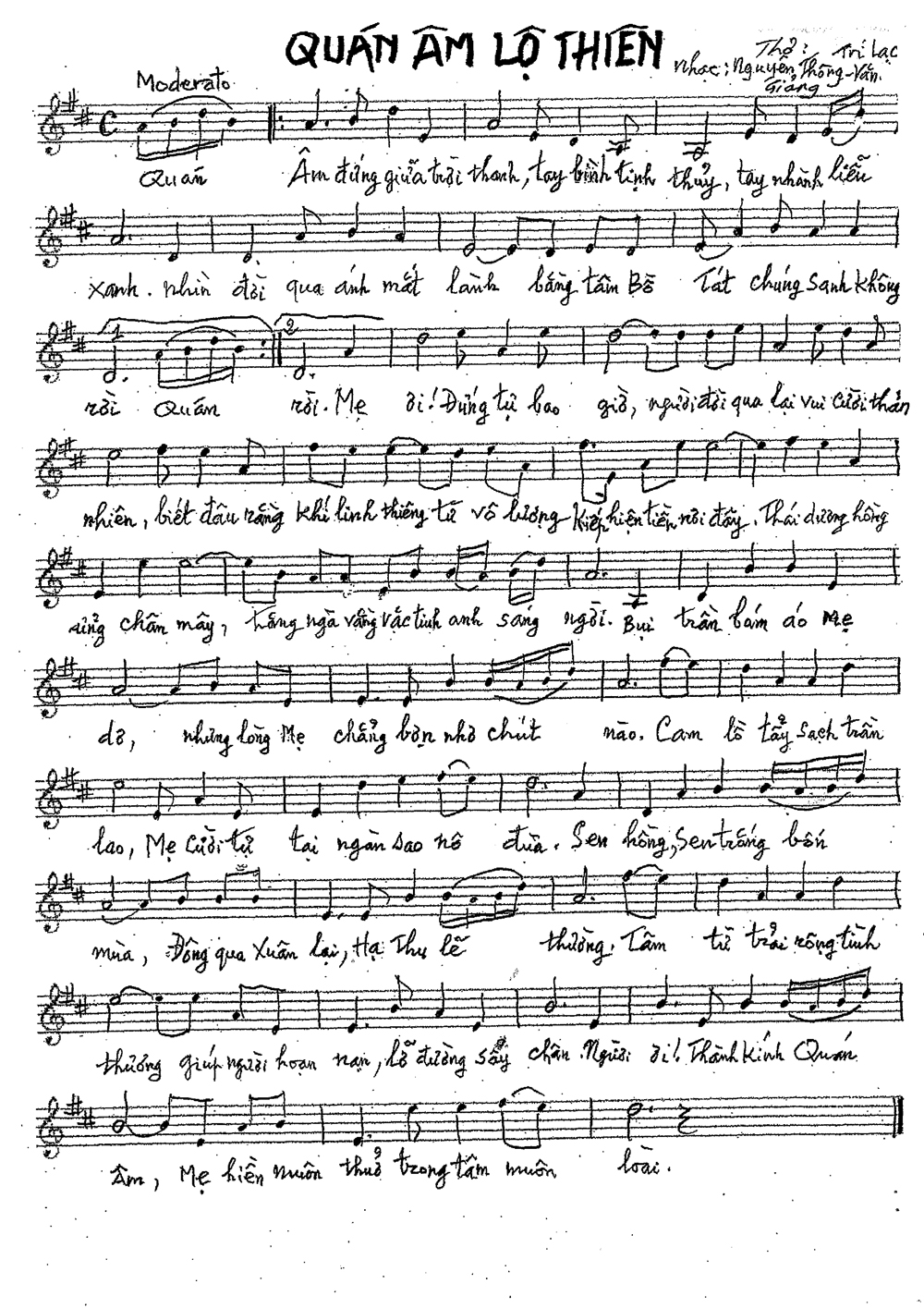 Nhạc phẩm: Hạnh Nguyện Quan Âm, Thơ của Trí Lạc, Nhạc: Nguyên Thông Nguyễn Văn Giảng
