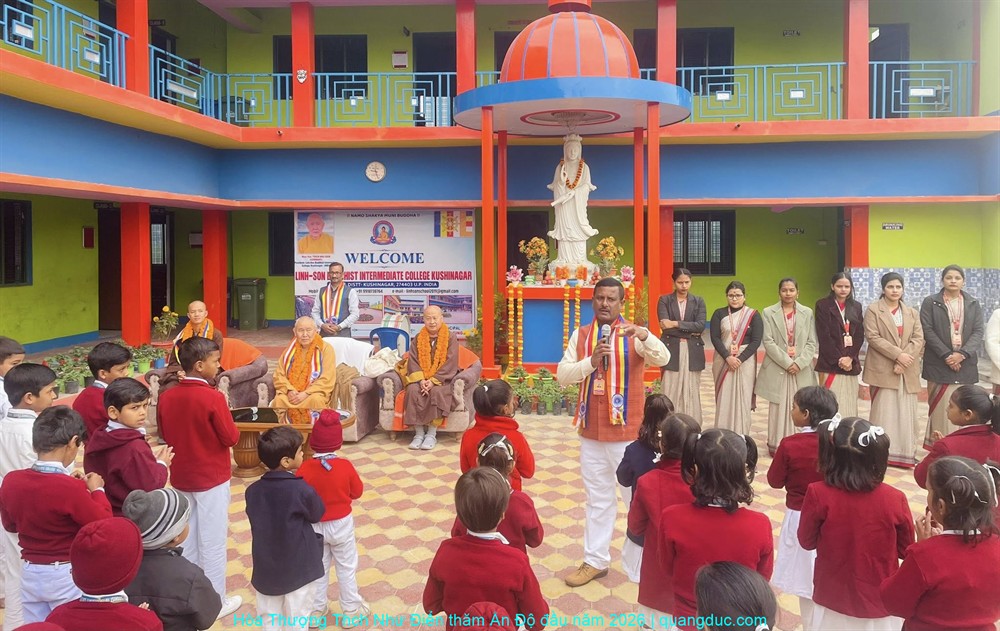 Khi nhìn nét mặt ngây thơ hồn nhiên của các em học sinh lớp mẫu giáo trường Linh Sơn College tại Kushinagar, U.P, Ấn Độ do Ni Sư Thích Nữ Trí Thuận sáng lập và hiện tại do hai Thầy giáo Mr. Rajesh Singh (PD Minh Tuyen). Tel.+91 983 955 2681 và Mr. DineshKKumar Verma ( PD. Minh Anh) . Tel. +91 991 873 8764 làm Hiệu Trưởng và Giám Đốc, chúng tôi cảm thấy rất gần gũi vì các em dễ thương vô cùng với sự hồn nhiên. Khi các em làm những bài toán cộng, trừ, nhân đơn giản đúng đáp số thì được Thầy Hạnh Bổn phát cho mỗi em 20 Rubies. Số tiền không lớn, nhưng là thành quả học tập của các em và sự dạy dỗ của các Thầy Cô giáo trường làng. Ở đây phải nói là Thầy, Cô đã hy sinh lớn lao về thời gian và sự tận tuỵ mới có được những lớp học từ mẫu giáo cho đến lớp 12 như thế. Nhiều em đã được học miễn phí và sau khi học xong trung học ở đây, quay trở lại trường dạy lại các em khác. Đúng là: “Ăn quả nhớ kẻ trồng cây”; “uống nước nhớ người đào giếng” là vậy. Sinh hoạt ở Ấn Độ tuy rẻ hơn các nơi khác trên thế giới, nhưng giáo viên ở đây nhận mỗi tháng chỉ có 8.000 Rubies tính ra chưa tới 100 USD, mà họ phải lo trang trải cho gia đình và con cái của họ nữa; nhưng các Giáo viên vẫn tiếp tục đứng lớp cả mấy chục năm nay, quả là điều đáng trân quý vô cùng.