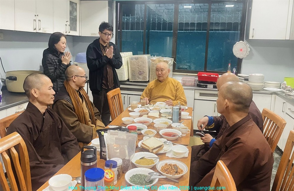 Sáng ngày 6.2.2026 Thầy Trò, Ông Cháu chúng tôi sau thời Kinh Lăng Nghiêm tại Trung Tâm Tu Học Viên Giác tại Bồ Đề Đạo Tràng, được Thầy Thích Nhuận Tiến mời ra nơi Pháp Hội Pháp Hoa đang hành trì dưới cội Bồ Đề, để thăm hỏi và giảng một thời pháp về ý nghĩa của việc thọ trì Kinh Pháp Hoa, gồm cả hỏi đáp trong vòng 1 tiếng đồng hồ. Hôm đó có độ 60 hành giả trì tụng Kinh Pháp Hoa. Kế đó chúng tôi đi về chùa Đài Loan hay nói đúng hơn là Trung Hoa Triêu Thánh Hội của người Triều Châu, sáng lập cách đây hơn nửa thế kỷ về trước, sau đó vì không có người trông coi hội quán (Chùa), nên người Trung Quốc sinh sống tại Ấn Độ đã cúng cho Quý Ngài Trưởng Lão tại Đài Loan; và bây giờ các Ngài cũng đã lớn tuổi nên giao lại cho Quý Sư Cô người Việt Nam chúng ta trông coi. Chùa rất rộng có thể dung chứa trên 100 người ở lại cùng một lúc và nơi đây cũng có thể cử hành nhiều Phật sự khác nữa. Sau khi dùng cơm trưa, chúng tôi trở lại Trung Tâm Tu Học Viên Giác để nghỉ ngơi. Vì suốt cả 8 ngày qua đường xa vất vả. Tuy lần nầy hầu như tất cả các đoạn đường đi về 4 Thánh Địa: nơi Đức Phật Đản Sanh (Nepal); Bồ Đề Đạo Tràng (Gaya), nơi Thành Đạo; Kushinagara, nơi Ngài Nhập Bát Niết Bàn; vườn Lộc Uyển (Varanasi), nơi Ngài thuyết pháp lần đầu tiên cũng như Kỳ Viên Tịnh Xá (Sarvatti)….các xa lộ đều phẳng phiu, chắc chắn, rộng rãi….như những xa lộ Âu Mỹ, có nơi có cả 3 lines để chạy, nhưng tốc độ tối đa chừng 80 cây số giờ. Có nơi còn chỉ còn 30 cây số giờ. Bởi lẽ người và chướng ngại vật nhiều quá. Nào người, nào xe đi ngược chiều hay quẹo chữ U trên xa lộ v.v…nên chẳng làm sao so sánh được với các nước khác trên thế giới. Bởi lẽ toàn dân Ấn Độ có khoảng 1 tỉ 4 người, nên lo miếng ăn cho đầy đủ không phải là chuyện dễ. Không đói đã là may mắn lắm rồi. Còn nghèo thì ở đâu cũng có trên quả địa cầu nầy.