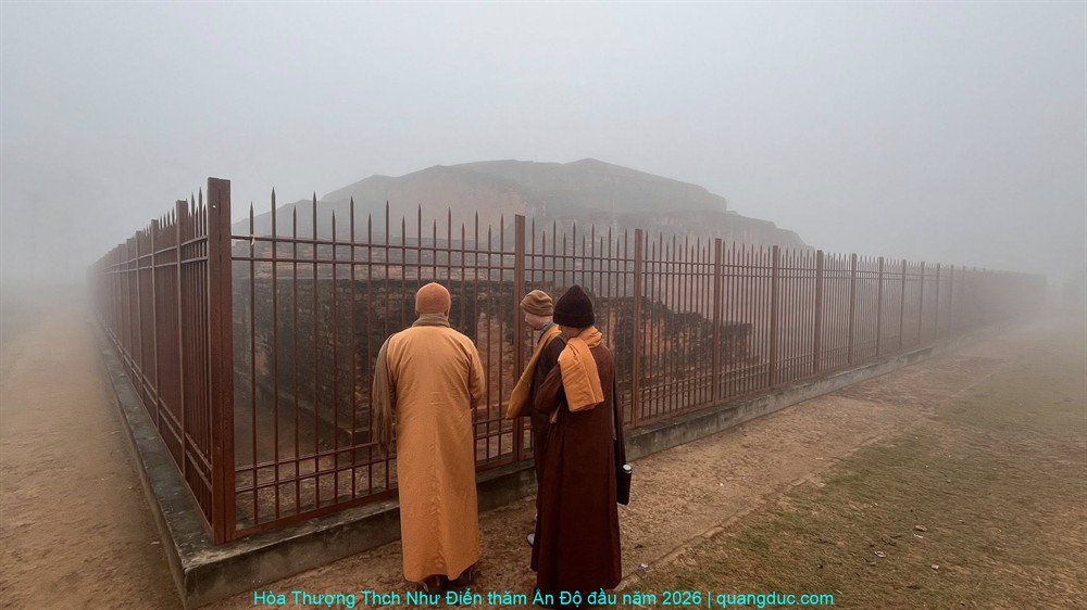Sáng ngày thứ Hai, nhằm ngày 2 tháng 2 năm 2026. Nếu đếm kỹ có đến 5 con số 2, là một ngày đặc biệt, cũng nhằm ngày Rằm tháng 12 năm Ất Tỵ nữa. Sau khi trì tụng Thần Chú Thủ Lăng Nghiêm tại Chùa Việt Nam chúng tôi dùng sáng và rời chùa để đi đến thăm cung thành Ca Tỳ La Vệ cách đó hơn 1 tiếng đồng hồ xe chạy. Lần nầy ngoài việc viếng cung thành, chúng tôi nhờ Tuấn hướng dẫn đến thăm hai nơi khác nữa gần cung thành. Đó là mộ của Vua Tịnh Phạn và Hoàng hậu Ma Ya và nơi Đức Phật độ cho La Hầu La xuất gia, sau đó giao cho Ngài Xá Lợi Phất làm Thầy giáo thọ. Với tôi, đây là lần đầu tiên đến được hai chỗ mới nầy, tuy rằng lịch sử của hai nơi nầy cũng đã trên 2.500 năm, trải qua không biết bao nhiêu lớp sóng phế hưng, dồn dập với thời gian năm tháng ngút ngàn, chẳng ai có thể giữ lại được của cải vật chất, dầu là các bậc đế vương vang bóng một thời. Chỉ có lòng từ bi và trí tuệ, giới hạnh mới còn lại suốt năm tháng vẫn không thể nào phai…..