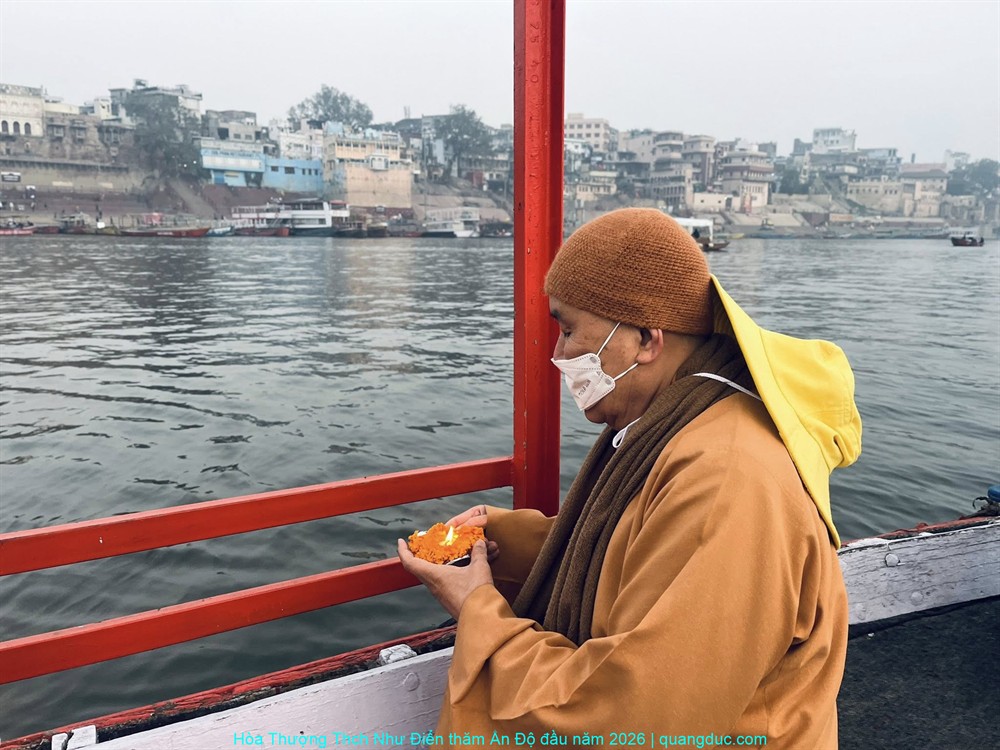 Vào lúc 5:30 sáng ngày 5.2.2026 chúng tôi đi bộ xuống thuyền để trôi nổi trên sông Hằng, nhìn bình minh với mặt trời vừa ló dạng và thăm viếng nơi thiêu xác những người Ấn Độ sau khi mất, nơi này nằm bên bờ sông Hằng (xin đọc thêm tác phẩm: Lòng Từ Đức Phật, do chúng tôi viết hơn 30 năm về trước để biết rõ chi tiết hơn về việc nầy). Sau khi thăm các nơi linh thiêng huyền bí nầy chúng tôi chạy xe hơi về lại Bồ Đề Đạo Tràng tại Gaya để kết thức chuyến đi 8 ngày 7 đêm có tính cách lịch sử nầy.