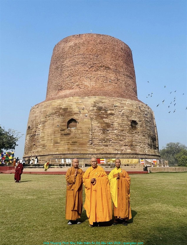 Tối ngày 3.2.2026 chúng tôi đã đến khách sạn bên bờ sông Hằng và cả ngày 4.2.2026 Thầy trò, Ông cháu chúng tôi ra vườn Lộc Uyển để đảnh lễ tháp cổ mà ngày xưa nơi đây Đức Thế Tôn đã thuyết pháp cho 5 anh em Ngài Kiều Trần Như về Tứ Diệu Đế, là bài pháp đầu tiên, đồng thời Tăng Đoàn bắt đầu được thành lập tại đây. Hiện nay nơi này vẫn còn Vườn Nai bên cạnh Đại Tháp và trụ đá của Vua A Dục. Trụ đá nầy bị gãy làm 4 đoạn, nhưng người ta vẫn bảo quản tốt bằng những hàng rào che chắn chung quanh. Khách hành hương chỉ đứng bên ngoài nhìn để tưởng niệm một thời vàng son như thế.