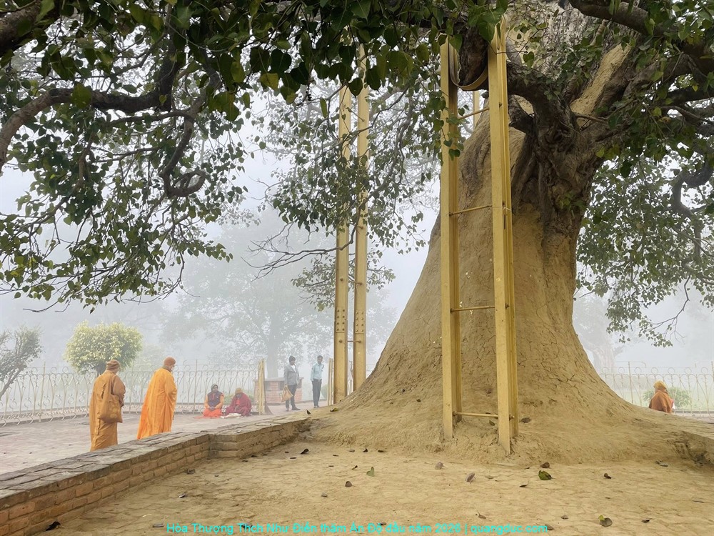 Sáng ngày 1.2.2026 Đoàn chúng tôi vào tụng Kinh và đảnh lễ nơi Đức Phật nhập Niết Bàn như những lần trước. Lần nầy đi sớm và vì sương mù nên ít có người vào đó. Không gian ở đây trầm tĩnh hơn. Chúng tôi dâng y lên Ngài và ngồi đó tụng một bài Kinh Bát Nhã cũng như niệm danh hiệu Đức Bổn Sư nhiều lần và hồi hướng, rồi nhường chỗ cho Đoàn khác vào. Chúng tôi ra bên ngoài đốt nhang, ngồi xuống bên gốc cây Sa La để niệm Phật tiếp trong vòng 40 phút nữa mới đi nơi khác. Lần nầy nhờ Tuấn, người hướng dẫn viên Ấn Độ nói tiếng Anh rất rành và tiếng Việt với giọng lơ lớ dẫn đến nơi phân chia Xá lợi của Đức Phật ra làm 8 phần, nơi có cội cây Bồ Đề chắc cũng có cả ngàn năm tuổi. Đây là nơi chốn mới được phát hiện vào năm 2012 nên ít có người nào biết đến.