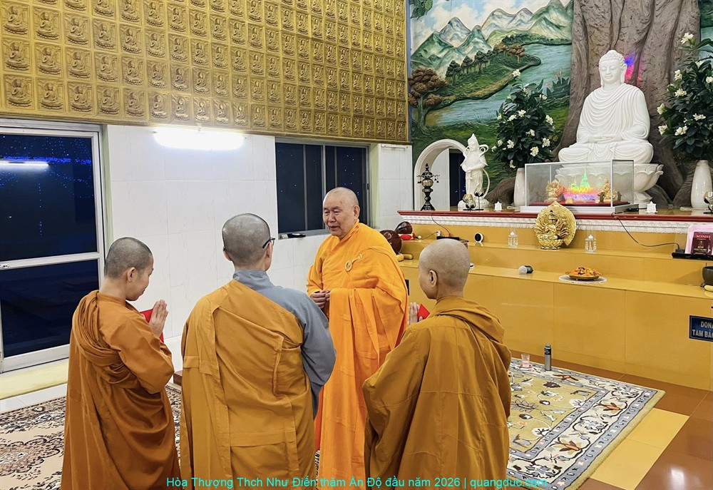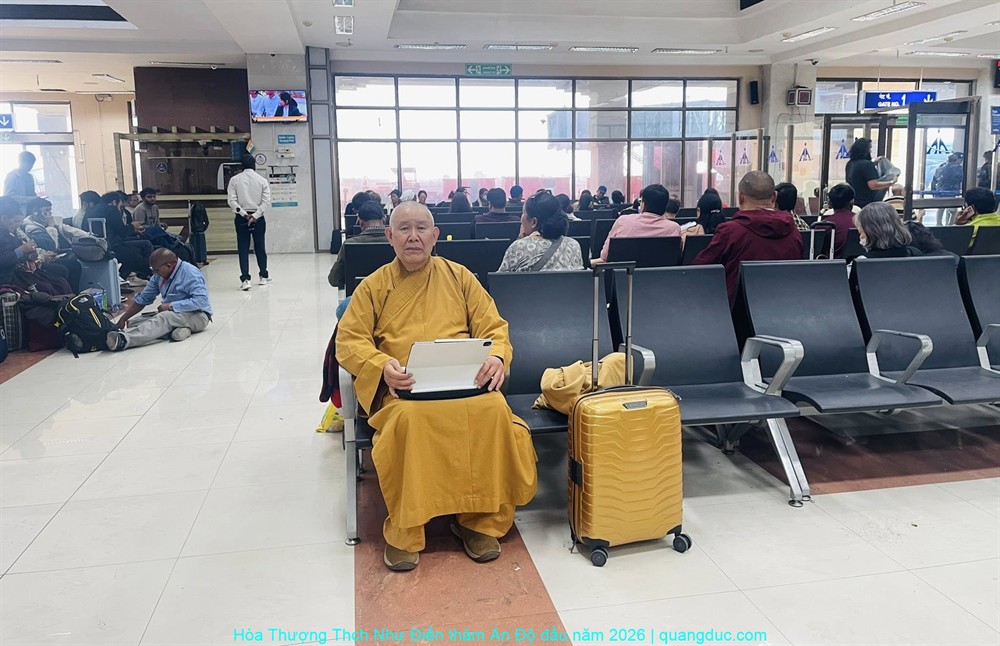Vào sáng sớm ngày 3.2.2026 Đoàn chúng tôi 4 người gồm: tôi, Thầy Hạnh Bổn, Thầy Tâm Thức và Tuấn, là một người Ấn Độ nói sành tiếng Anh và nói lơ lớ tiếng Việt sau khi học tại Hà Nội một năm, về nước làm thông dịch cho những Đoàn Việt Nam tham quan, chiêm bái các Phật tích. Chúng tôi giao hẹn là ba Thầy Trò, Ông Cháu sẽ nói tiếng Anh trên suốt đoạn đường đi, còn Tuấn thì trả lời bằng tiếng Việt để luyện giọng cho Tuấn và chúng tôi đã giữ nguyên tắc ấy suốt cả tuyến hành trình dài 8 ngày 7 đêm. Thầy Hạnh Bổn là đệ tam Trụ Trì Tổ Đình Viên Giác, Hannover Đức Quốc. Từ năm 2017 đến năm 2022. Sau khi đậu Cao Học tại Đại Học Karlsruher, Đức Quốc thì xuất gia với tôi tại Tổ Đình Viên Giác, Hannover, nên rất rành tiếng Đức và sau đó có hơn 5 năm học tiếng Hoa tại Đài Loan và Anh ngữ thì học ở Trung Học cũng như Đại Học, ai cũng đã có nhiều năm trau dồi học tập và bây giờ gặp việc, chỉ bắt đầu mở máy ra để nói mà thôi. Còn Thầy Tâm Thức vốn là đệ tử của Hòa Thượng Chân Tính chùa Hoằng Pháp tại Việt Nam. Sau khi tốt nghiệp Tiến Sĩ Phật Học tại Đại Học Maha Chololongong ở Thái Lan năm 2025 vừa rồi, lần nầy muốn tháp tùng với tôi sang Úc và Ấn Độ, nên Thầy ấy cũng đã đi suốt tuyến đường 45 ngày như vậy. Tiếng Anh Thầy ấy vững vàng kèm theo một ít tiếng Thái nữa, nên giao dịch ở xứ Phật không khó mấy. Phần tôi thì gặp ai nói ngôn ngữ nào, sẽ bắt kịp theo đó để trả lời trong khả năng có thể của mình. Còn anh tài xế thì chỉ nói năm ba câu tiếng Anh đủ xài lúc cần thiết. Ăn, ngủ cũng không cùng nơi chốn, vì người Ấn Độ cho đến bây giờ vẫn còn phân chia giai cấp rõ ràng như vậy. Mặc dầu chúng tôi cho phép anh ta ngồi chung, nhưng anh ta vẫn một mực từ chối. Đặc biệt ở anh là lái xe không cần bản đồ và là một tay lái lụa của Ấn Độ, chắc rằng Âu Châu ít có người lái được như vậy.