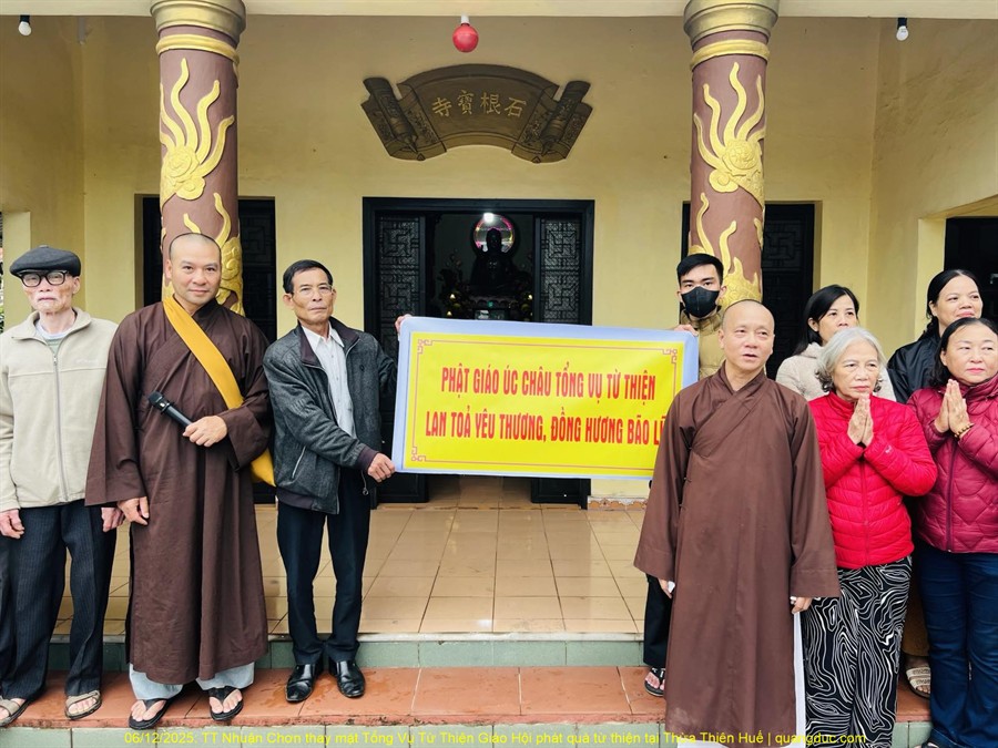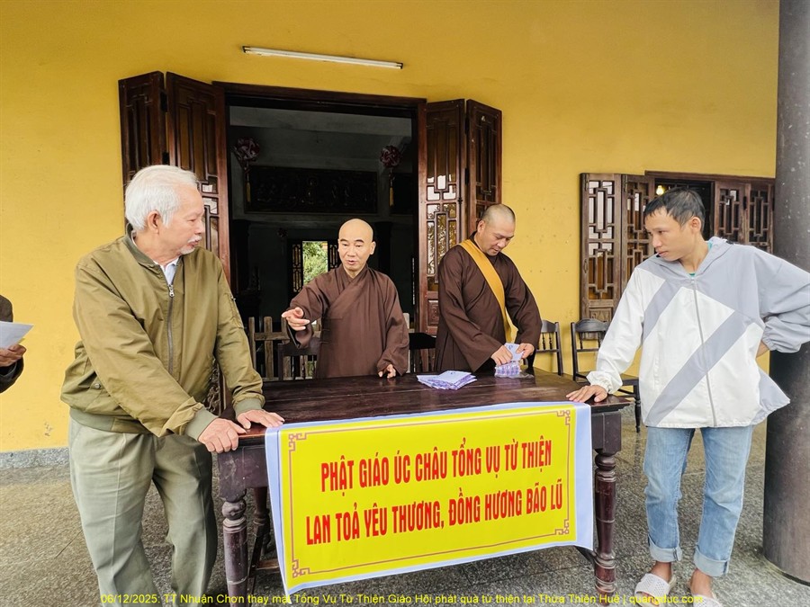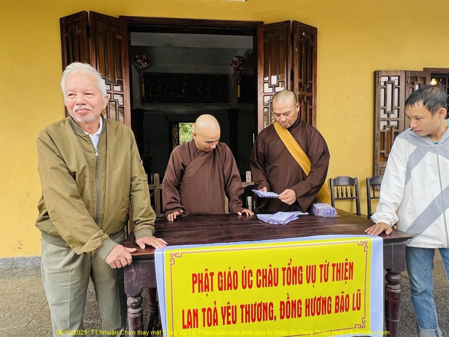 Trong tinh thần “lá lành đùm lá rách”, hướng lòng từ bi của Đạo Phật về những vùng đang gánh chịu hậu quả nặng nề của bão số 13, sáng nay ngày 06/12/2025, Thượng Tọa Thích Nhuận Chơn, Trụ Trì Tu Viện Kim Cang, Melbourne, Úc Châu, kiêm Tổng Vụ Trưởng Tổng Vụ Nghi Lễ, đã đại diện Tổng Vụ Từ Thiện Xã Hội của Giáo Hội thân lâm về tỉnh Thừa Thiên Huế để thực hiện chuyến cứu trợ khẩn cấp.
