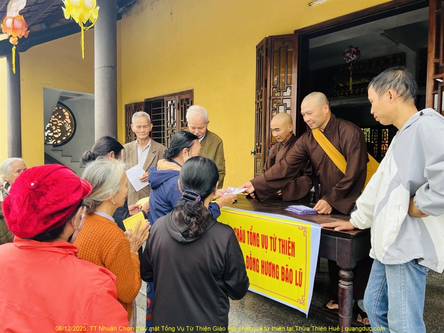 06/12/2025: TT Nhuận Chơn thay mặt Tổng Vụ Từ Thiện Giáo Hội phát quà từ thiện tại Thừa Thiên Huế