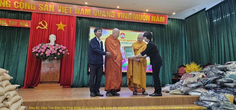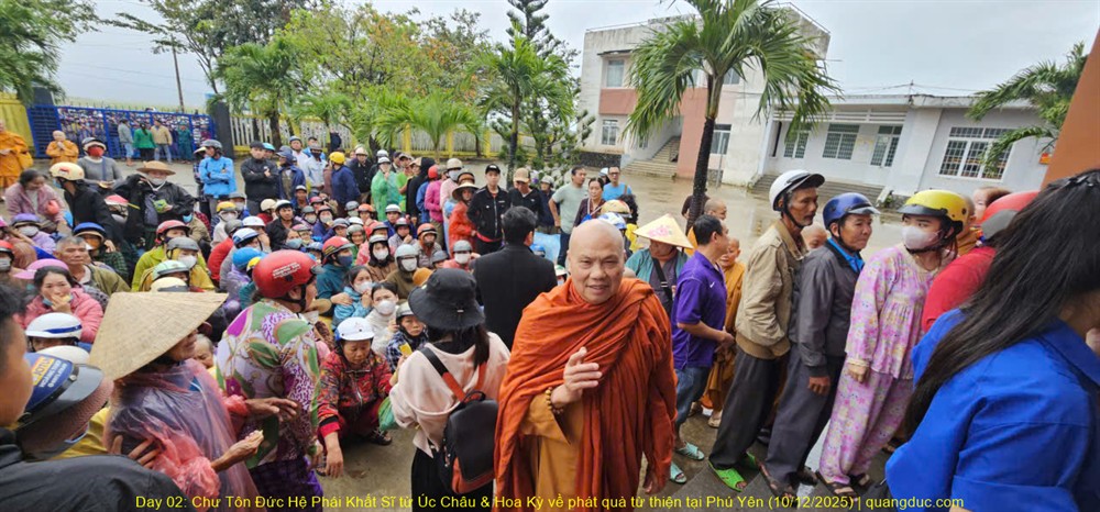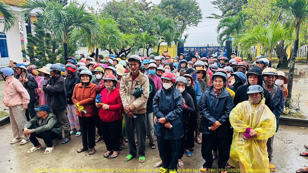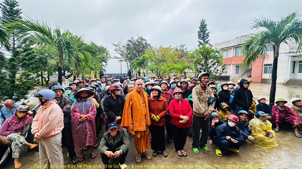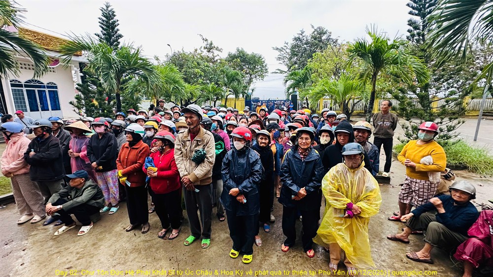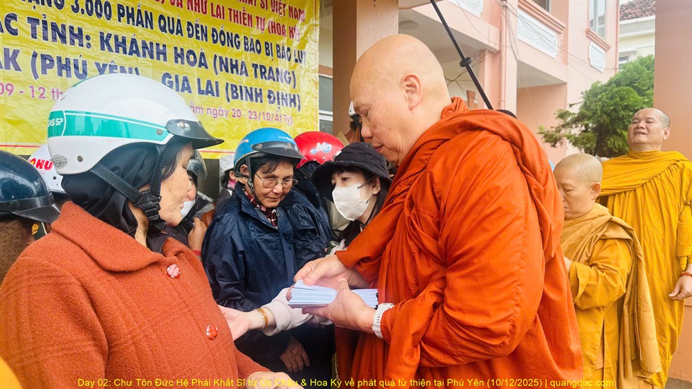 Hôm nay, Thứ Tư ngày 09/12/2025, bước sang ngày thứ hai của chuyến cứu trợ đồng bào vùng lũ quét miền Trung, Hòa Thượng Thích Minh Hiếu, Viện Chủ Thiền Viện Minh Quang (Sydney, Úc Châu), và Hòa Thượng Thích Minh Hồi, Viện Chủ Như Lai Thiền Viện (California, Hoa Kỳ), đã cùng Chư Tôn Đức Tăng hệ phái Khất Sĩ tại quê nhà thân lâm đến tỉnh Phú Yên để thăm hỏi và trao quà cứu trợ.