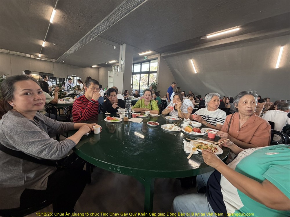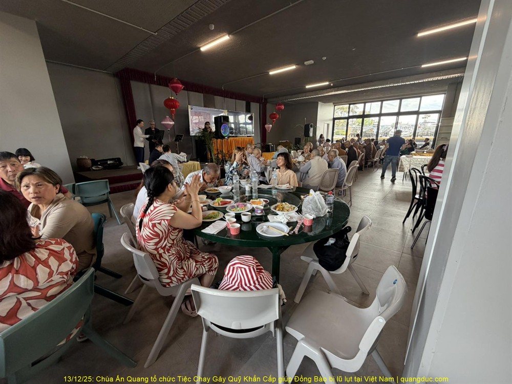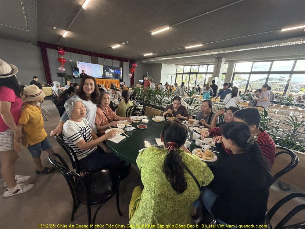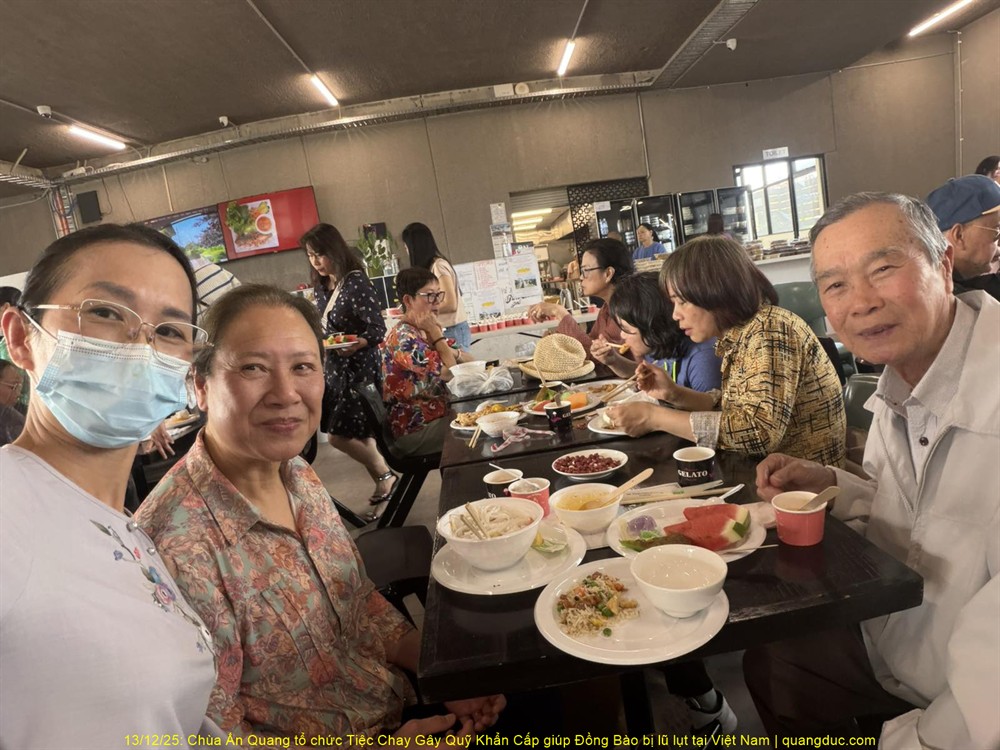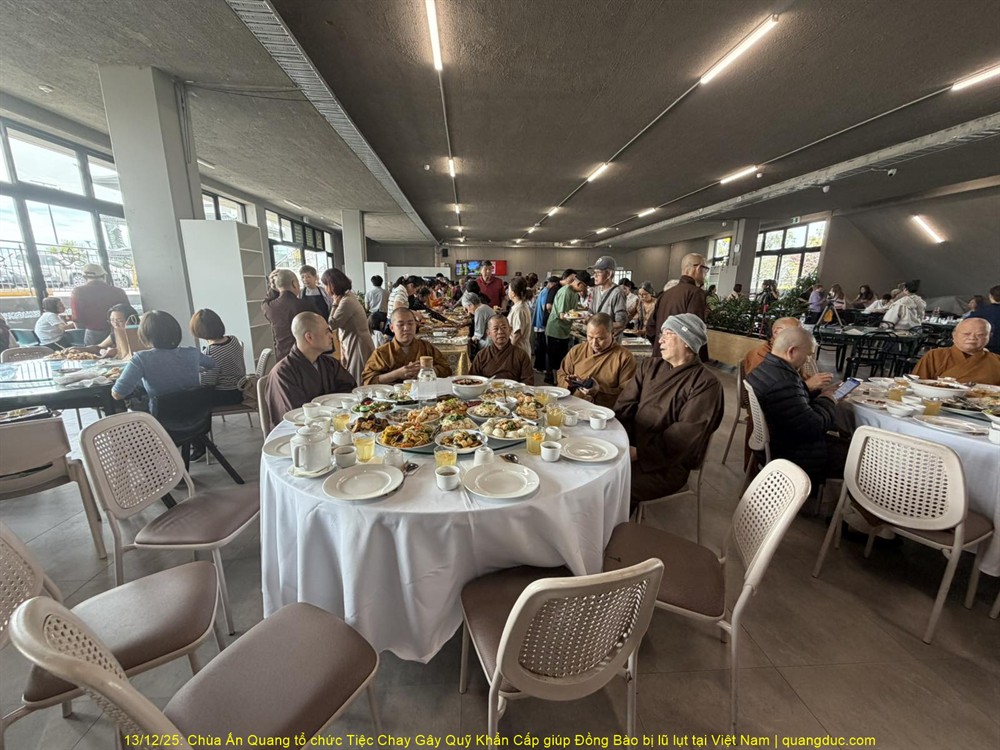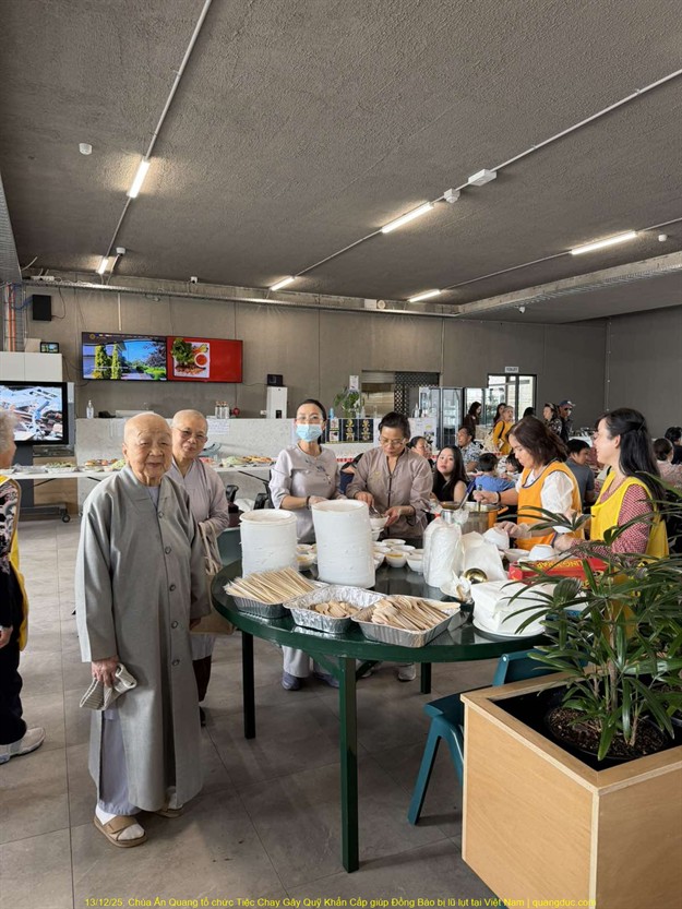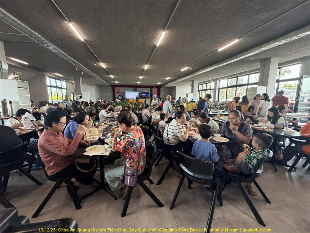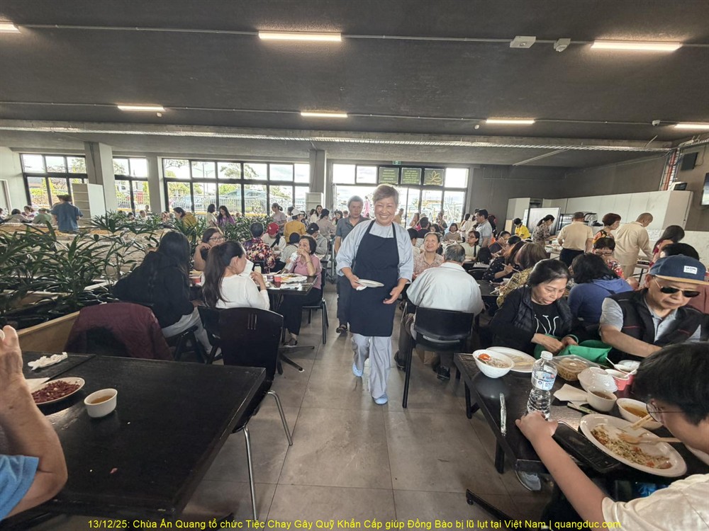Trưa hôm nay Thứ Bảy, ngày 13/12/2025, tại Chùa Ấn Quang, vùng Cairlea, tiểu bang Victoria, đã long trọng diễn ra Tiệc Chay Gây Quỹ Khẩn Cấp nhằm hỗ trợ đồng bào miền Trung Việt Nam bị thiệt hại nặng nề do đợt lũ quét nghiêm trọng vừa qua.