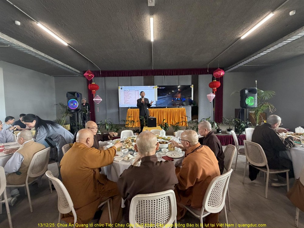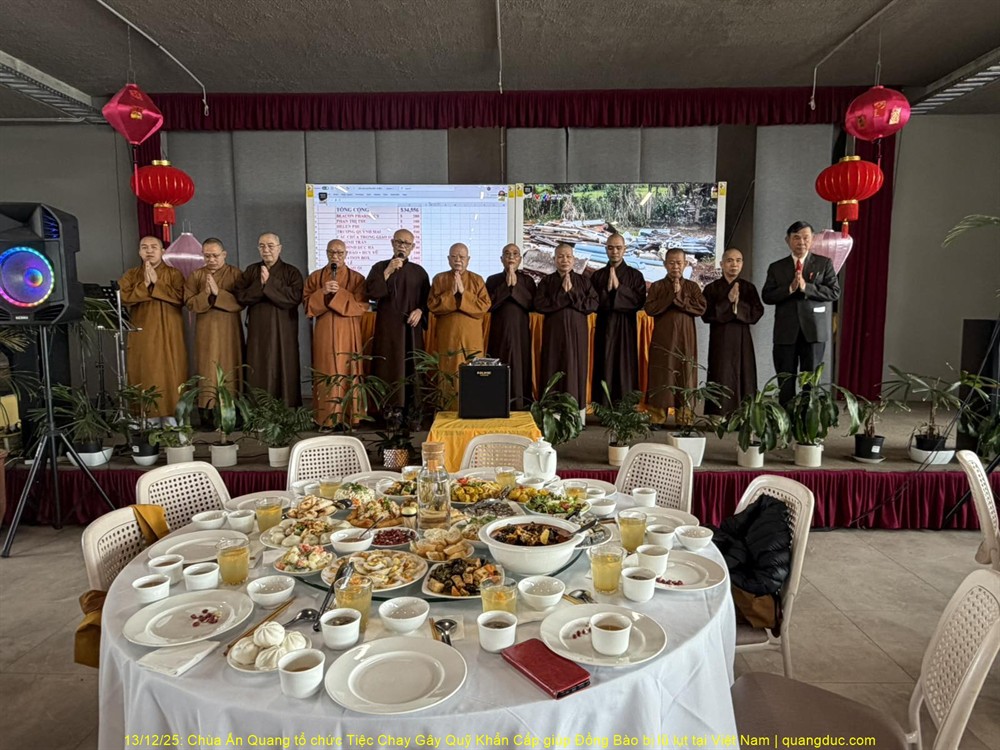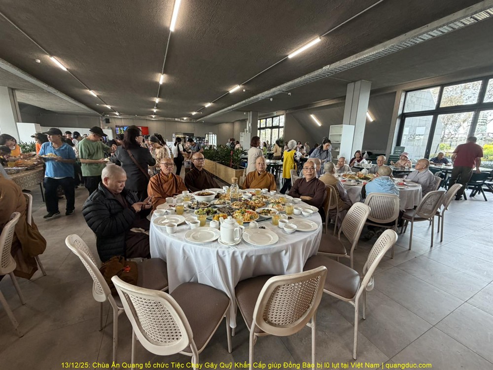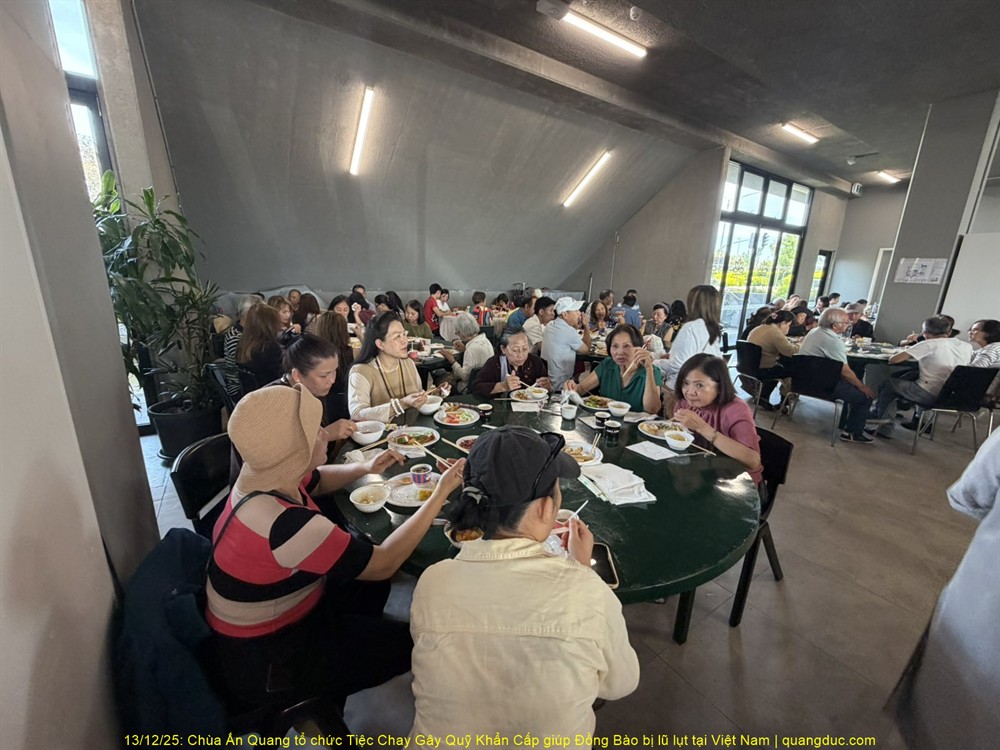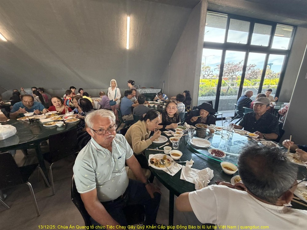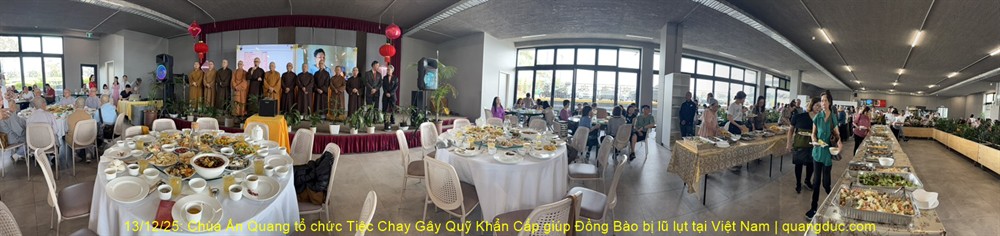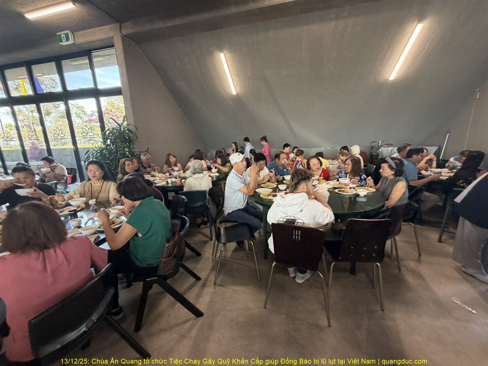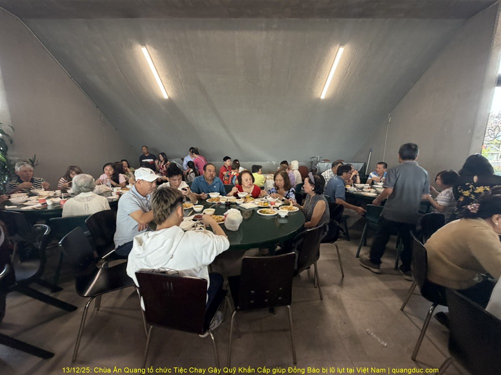 Trưa hôm nay Thứ Bảy, ngày 13/12/2025, tại Chùa Ấn Quang, vùng Cairlea, tiểu bang Victoria, đã long trọng diễn ra Tiệc Chay Gây Quỹ Khẩn Cấp nhằm hỗ trợ đồng bào miền Trung Việt Nam bị thiệt hại nặng nề do đợt lũ quét nghiêm trọng vừa qua.